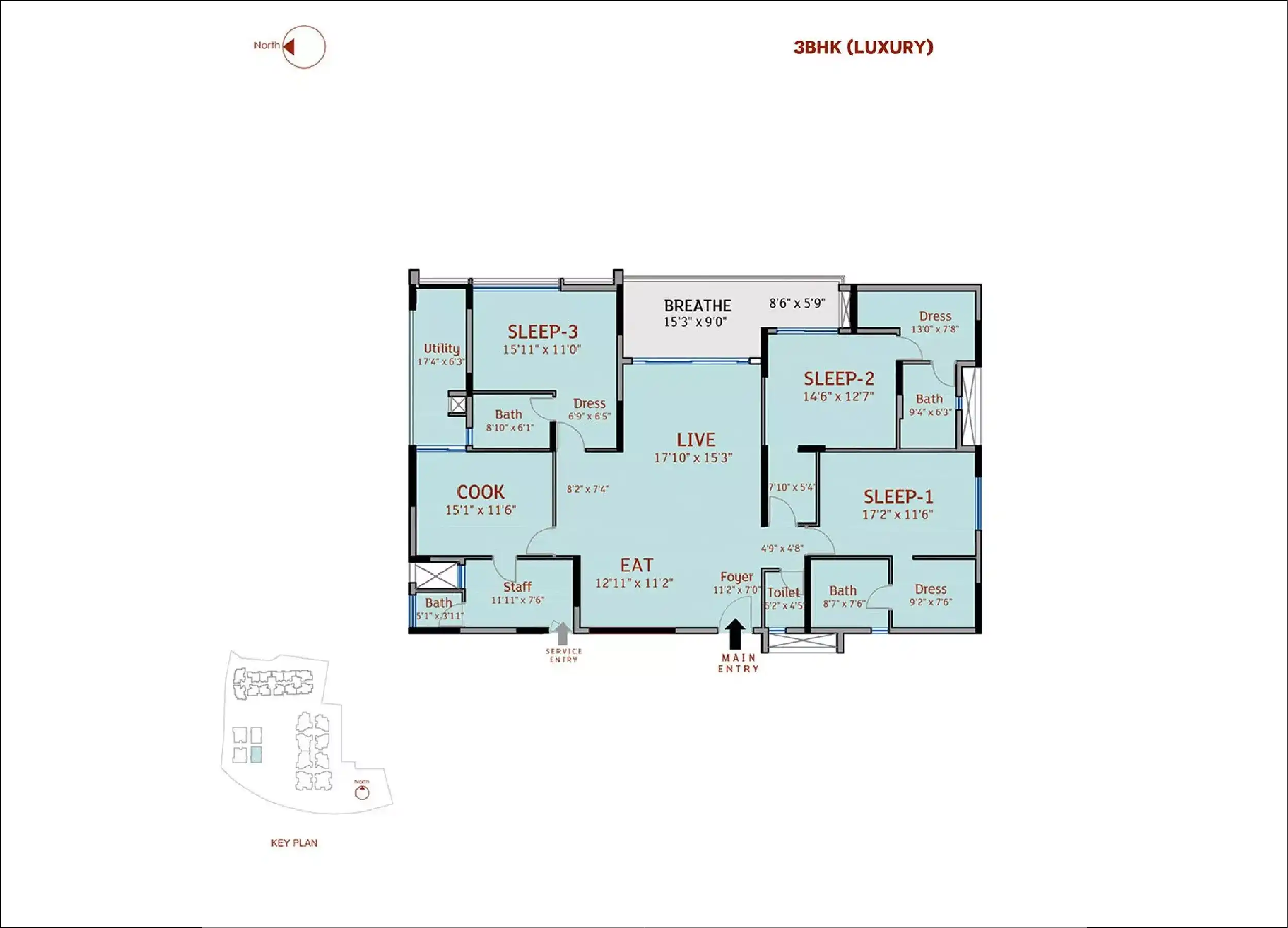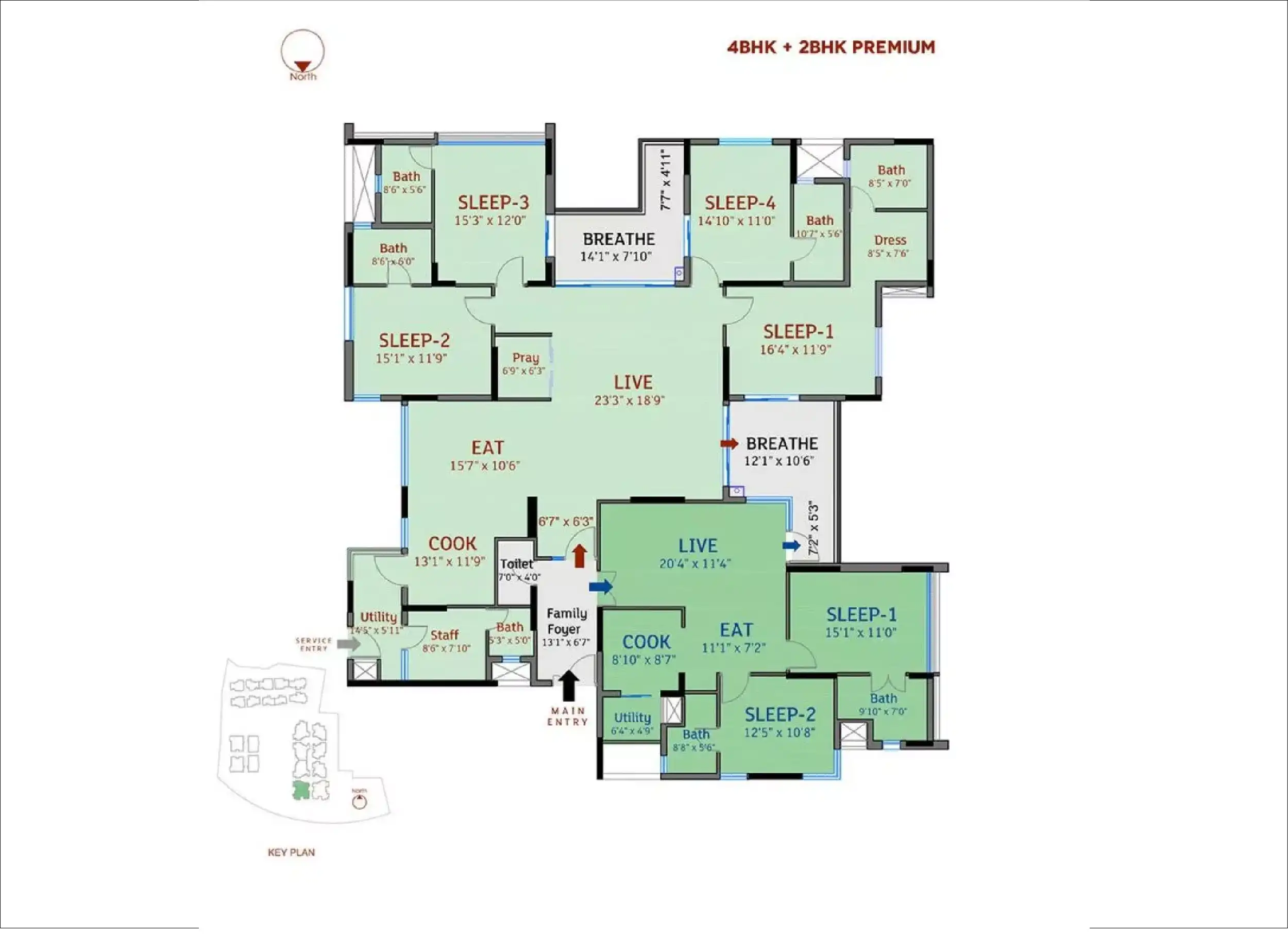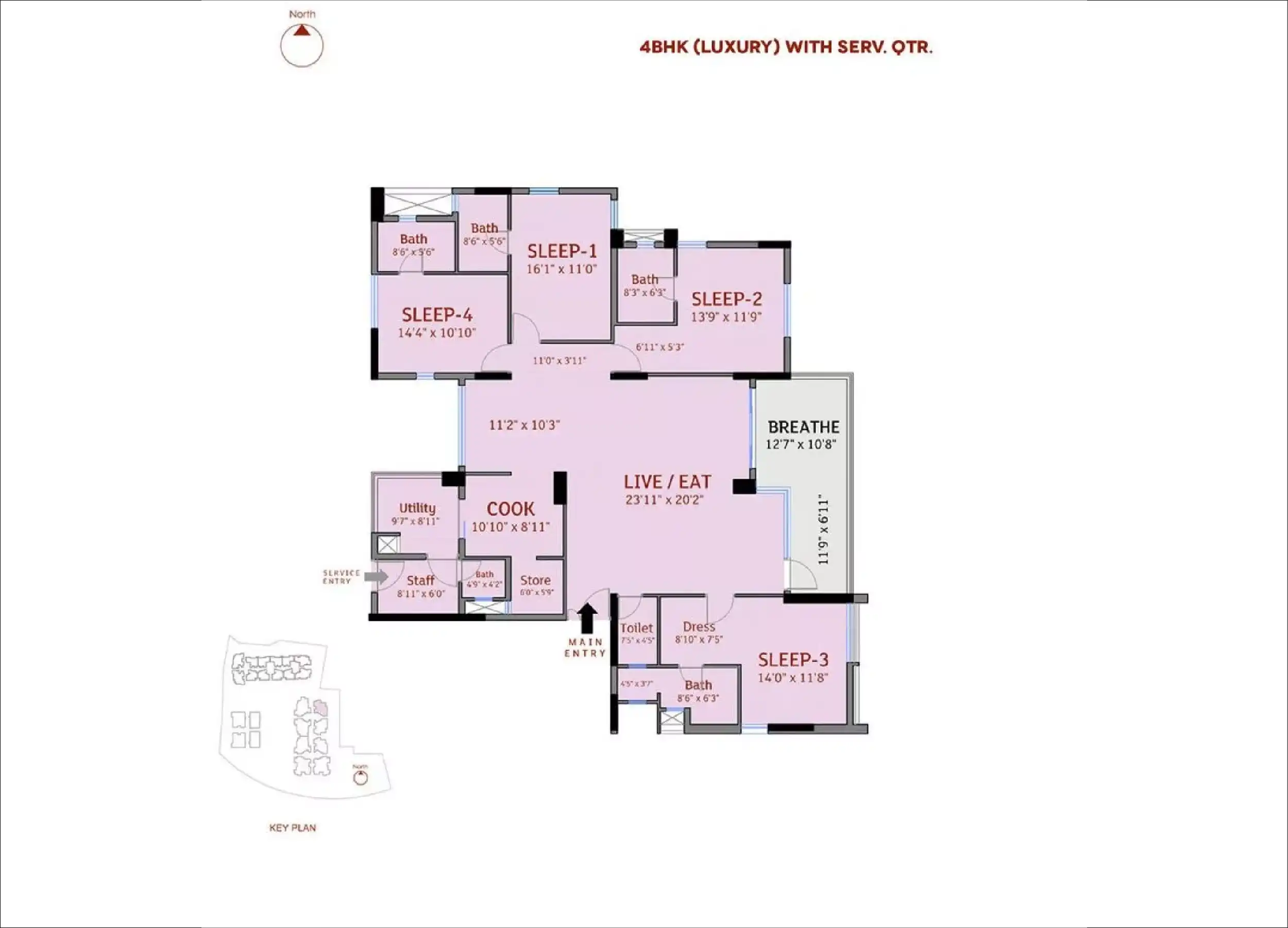 | 4 Bed Room | 2807 - 2600 |